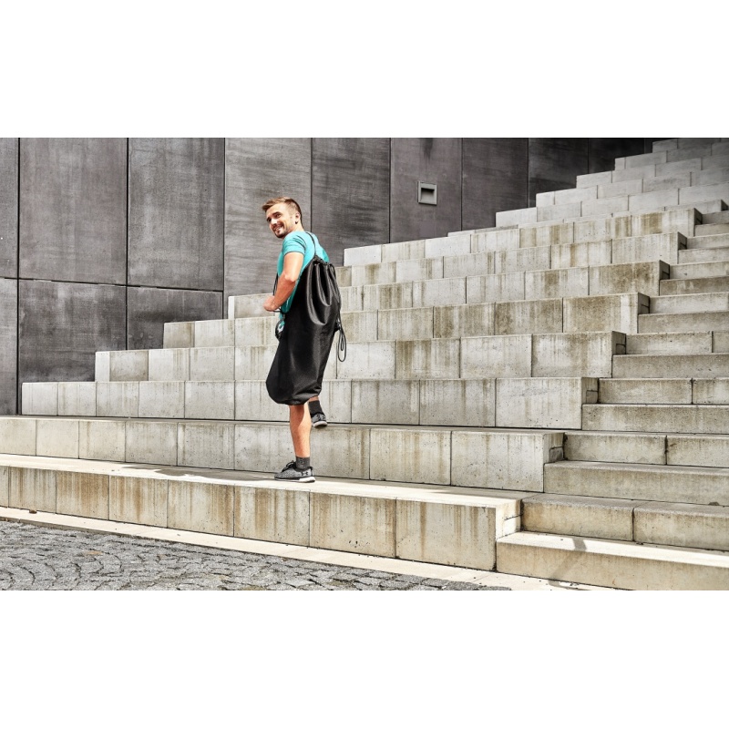 Kott on valmistatud veekindlast kangast, mis ei lase vett ega mustust sisse ning seda on lihtne puhastada. Kott on kinnitatud nööriga, seega saab tõukeratast hõlpsasti kotti panna ja sealt välja võtta.